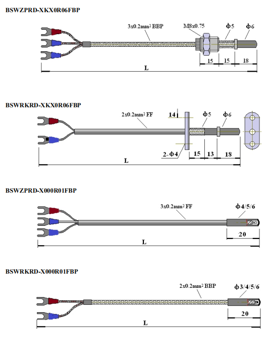 BSW□□RH 型電機專用熱電偶/阻是根據大型電機、汽輪機、發電機、鼓風機等旋轉類設備的高速運轉,由于潤滑或冷卻等原因,造成軸承或軸瓦升溫過快或過高,或者由于負荷、電流、絕緣、繞組等因素發生變化,引起線圈繞組升溫過快或過高,要求對軸承軸瓦或線圈繞組實現溫度監控和超溫報警。它主要由測溫探頭、高溫引線、安裝固定裝置等三部分組成,小型測溫探頭緊密可靠地接觸被測面,從而準確地連續地反應出被測點的溫度。它具有測溫精度高、熱響應時間快、結構簡單、安裝方便、成本低、安全可靠、電氣性能穩定、使用壽命長等優點,是大型電機、汽輪機、發電機、鼓風機等旋轉類設備的理想測溫產品,對長期 連續運行的大型旋轉類設備的保護起著非常重要的作用。